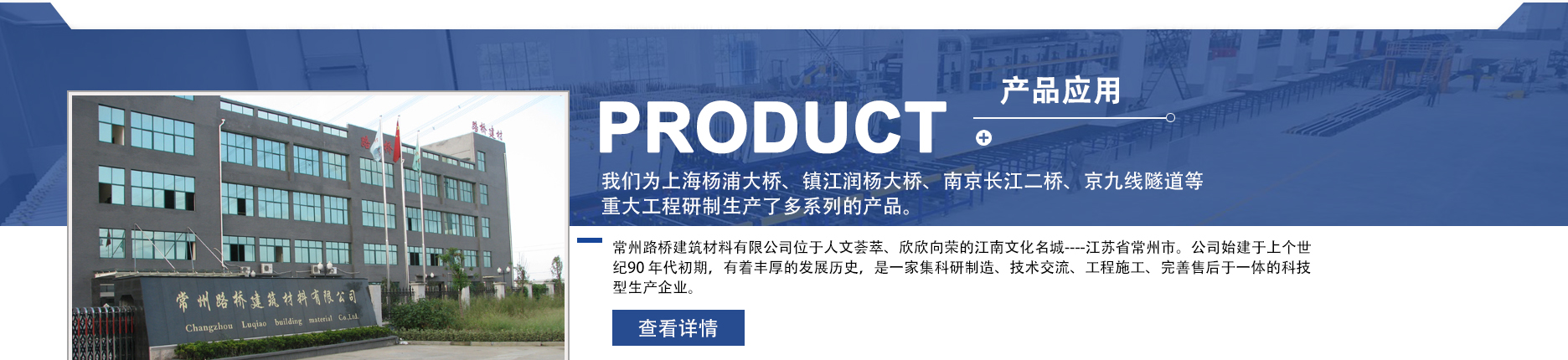 常州路橋建筑材料有限公司位于人文薈萃、欣欣向榮的江南文化名城----江蘇省常州市。公司始建于上個世紀90 年代初期,有著豐厚的發(fā)展歷史,是一家集科研制造、技術(shù)交流、工程施工、完善售后于一體的科技型生產(chǎn)企業(yè)。